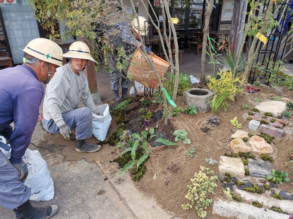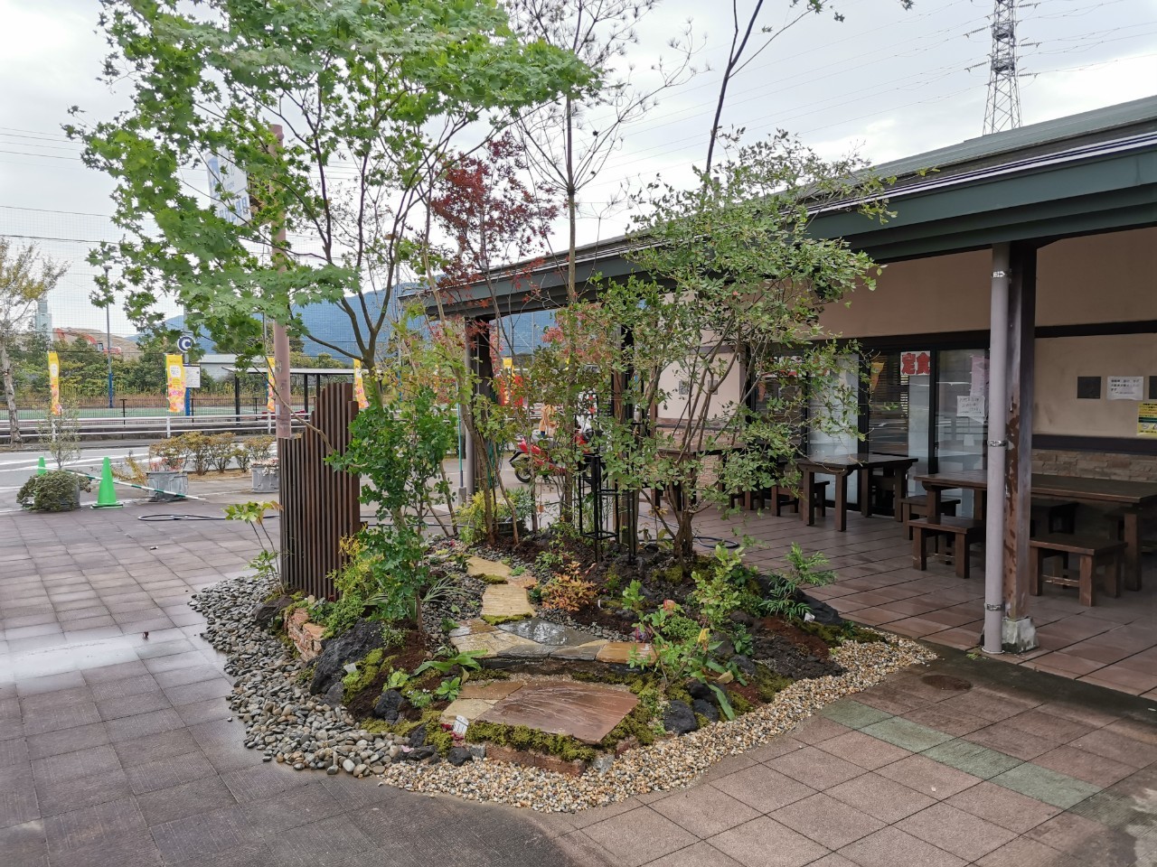 秋の植木市、グリーンマルシェに先駆け、くるめ道の駅に坪庭を作成しました。
